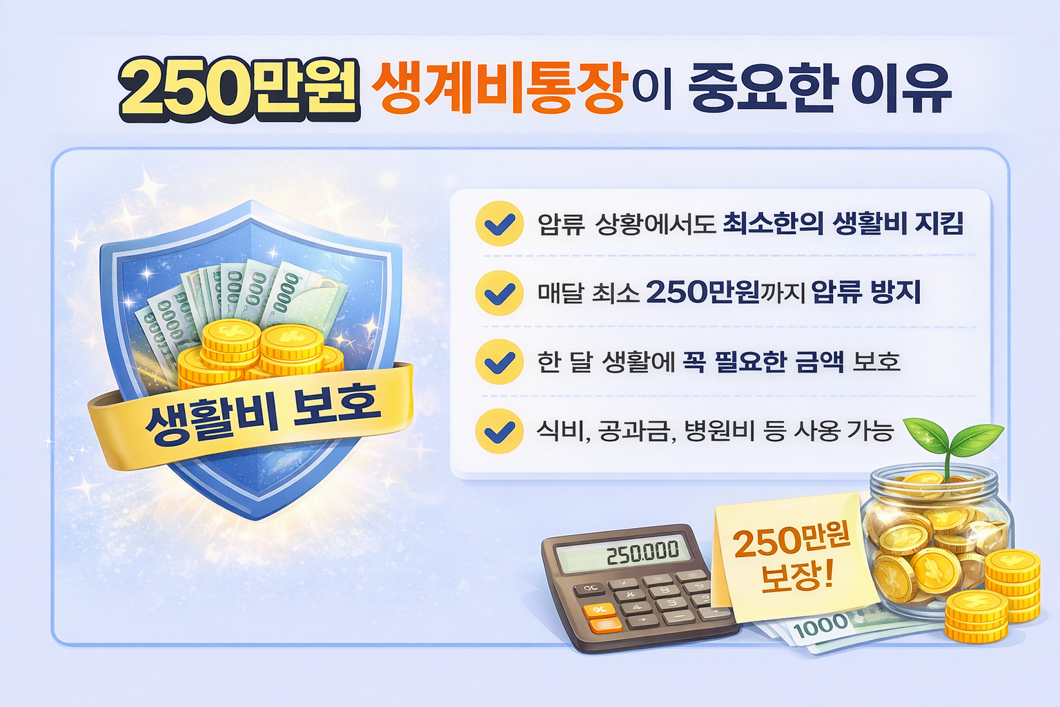 생계비통장 개설 방법 총정리 | 압류방지통장 250만원 한도와 조건